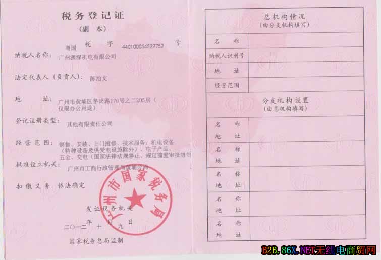 » 税务登记证