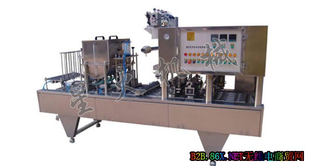 猪皮冻灌装封口机适用于各种猪皮冻、八宝粥、绿豆沙等产品的生产,能自动完成塑料碗/杯的自动落碗/杯、充填米、充填莲子等、水灌装、紫外线消菌、光电定位、两道热封、自动对芯剪切及废膜回收等功能。