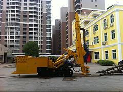 LD-100系列履带式多功能全液压钻机主要特点: 1.该系列钻机采用台湾进口HB-500冲击、旋转一体式动力头,该动力头采用高扭矩旋转马达,旋转动力更强,扭矩可达15000N·m,液压冲击性能更优异,冲击力可达750~800N·m,适合各种复杂地层施工。 2.适应各种钻进工艺,能有效解决在松散覆盖地层、回填地层、卵砾石层、破碎层以及淤泥和砂层中钻进的成孔困难问题。在复杂地层可进行(钻杆+套管)双管齐下冲击回旋钻进,有效地防止孔内坍塌,方便装置锚具等其他相及配件以及注浆。特有的套管钻进工艺可快速进行管棚钻孔作业,完成除险加固工程。