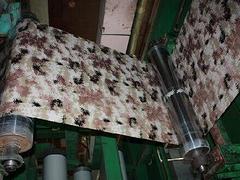 印花彩板是指通过转印或覆膜技术等手段将各类花纹印刷在镀锌板、镀铝锌等基板上的一种彩涂板。印花彩板是指通过转印或覆膜技术等手段将各类花纹印刷在镀锌板、镀铝锌等基板上的一种彩涂板。应用较广的主要有大理石纹、迷彩、木纹等印花彩板,其色彩鲜亮、花色繁多。
