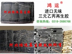 无味三元乙丙再生胶是由河北鸿运特种再生胶有限公司国内独家代理的进口细离子无味三元乙丙再生胶,产品细度可达80目以上,具有耐高低温、抗老化、高绝缘、耐臭氧、防侵蚀等物理性能,与密封条制三元乙丙再生胶相比还具有含胶量高、无味道、弹性好、产品表面平滑光亮等特点,是生产挤出或模压三元乙丙制品降低成本的最佳原料,全部使用或部分掺用无味三元乙丙再生胶均可在保证橡胶制品质量的同时有效降低原料成本。【本产品通过欧盟环保认证】