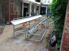 用途与特点:本机主要用来生产PVC.ABS.PP等塑料蜂巢板;是箱包内衬用板;室内装饰扣板,童车,以及建筑,包装等塑料蜂巢板生产的必备设备.该机组生产的蜂巢板表面光滑平整,无裂缝,无气泡,无麻点,定长定宽设计.自动切割,操作方便,设计合理. 主要技术参数: 型号Model /参数Date 长径比/ Aspect ratio 产量/ Yield 螺杆转速/ screw speed 驱动功率/ Drive power 牵引功率/ Traction power 45型 1:25 20-30 0-75 5.5KW变频 1.1KW 50 1:25 30-60 0-75 7.5 1.1KW 65 1:25 60-100 0-75 11 2.2KW 70 1:25 70-120 0-70 15 2.2KW 80 1:25 75-130 0-70 18.5 2.2KW 90 1:24 80-150 0-70 22 2.2KW 110 1:23 90-180 0-70 30 2.2KW