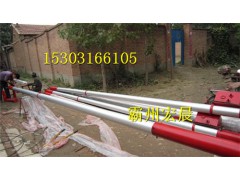 产品优点:本厂生产的立杆机均采用国标铝合金管材,具有重量轻强度大的特点,承载能力强,组装方便应用灵活,不用打地锚,两三个人就可以完成施工,配有手摇绞磨,立杆速度快。
