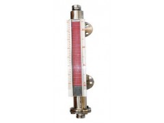 在桶槽外侧装置延伸旁路管,由旁路管外加装液位指示器,将装有磁铁的浮球放进旁路管内,因磁性色片内装着与浮球磁性相反之磁铁,所以当浮球上升时会吸引磁性色片翻动,磁性色片颜色会由白色翻为红色(或银色翻为金色),以指示实际液面高度。