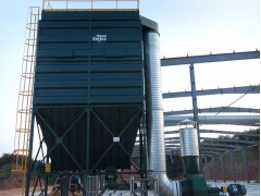 袋式除尘器在进口处设置进风导流板,一方面可以使大颗粒物料直接降入灰斗,减小了对滤袋的直接冲刷,另一方面也减小了滤袋的负荷,降低了滤袋单位时间内的阻力;增加了滤袋的使用寿命;对除尘器进行流场分析,优化除尘器内部结构,降低除尘器设备阻力,保证各室风量分配均匀,保证滤袋使用寿命;进、出风口加大,使其局部阻力系数减小,降低了除尘器的阻力。