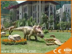 产品规格:(1)尺 寸:定做;(2)动 作:张嘴、眨眼、头部摆动、前肢摆动、腹部呼吸、尾巴摆动、仿真声效 3)启 动:红外线感应启动、声控启动、遥控启动、按键启动、程序启动;(4)颜 色:惯用色或按客户要求;(5)电 源:220V;(6)配 件:展示牌;(7)备 注:我们所生产的仿真恐龙或动物产品内部采用高质量钢结构造型、由直流电机控制动作、表皮采用高密度海绵,高档硅橡胶和环保漆,造型师手工造型。产品形象生动逼真,动作灵活。