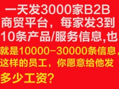 1、选择b2b信息发布软件-258商务卫士进行b2b商贸平台产品/服务信息发布,发布速度快,发布站点多,信息量巨大。a、快速近3000-10000个b2b商贸网站,时间只要1小时,是人工速度的100倍以上。b、每天可编写商品详情3-10条,自动发布到3000-10000家b2b商贸平台(全免人工参与),每天总发布量不少于10000条产品服务信息,信息海量覆盖b2b平台,抢占b2b平台流量.2、快速抢占百度、360、搜狗、中国搜索等全国5大搜索引擎前三页面快照免费广告位置,仅在收费广告位置之后,且点击不收费。3、产品/服务信息关键词不限量,特别适合产品多,精准长尾关键词多的信息。4、关键词上线收录速度快、快至秒收的效果,排名稳定时间长。以上的,山西b2b信息发布软件,浙江b2b信息发布软件,北京b2b信息发布软件公司不知道有用吗?请继续往下阅读