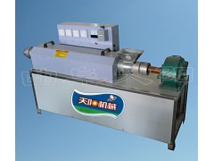 植物蛋白肉机(又称牛排机,豆耳机,豆皮机,素鸡翅机,豆牛筋机)是在先进设备的基础上研制的植物蛋白加工设备,该设备以冷榨豆粕为主要原料,经粉磨、搅拌、调质、高温、高压,将大豆蛋白打开成链状并重新组织化,形成筒状,片状或异型的蛋白肉食品,具有肉的状态和口感,不含胆固醇和动物脂肪,具有吸油、吸水、吸味的特点,广泛用于各类行业。有以下特点:1、大豆蛋白经膨化装置膨化,其蛋白质分子重新排列,具有同方向组织结构,类似肉样的多孔组织,因此有优良的保水性与咀嚼感;2、大豆蛋白在短时高温、高压力下加工,消除了大豆中所含的各种有害物质(胰蛋白酶抑制素、尿素酶、皂素以及血球凝聚素等),提高人体对蛋白的吸收消化能力,营养价值显著增加;3、膨化时,由于出口处迅速减压喷爆,可以除去大豆中的不良气味并降低大豆蛋白质食用后的产气性;4、大豆蛋白肉有良好的保油性,用它做出食品干净,不油腻;5、使用方便,用室温水浸泡30分钟,便可添加做成各种食品,对人体十分有益,老少皆宜,食用方便,是各种涮锅、火锅、砂锅、牛羊杂汤和多种麻辣烫的主要配料,可凉拌、热炒、炖菜(肉),加入调料也加工成五香、麻辣等具有鲜明地方风味的即食产品,市场需求量大。天阳植物蛋白肉机采用数显温控装置,自动加温,通过专用减速机带动螺旋挤压喷爆器使蛋白质受热变性挤出成型,目前推广的天阳豆皮机有两种: TYN-A型时产60-80公斤,适配动力2.2KW,价格4260元(畅销),TYN-B型时产80-100公斤,适配动4.5KW,价格5800元。内外加热自动成型羊肚丝机7250元。另可根据自己情况配备拌面机1280元,自动下料器2580元,切丝机2980元。