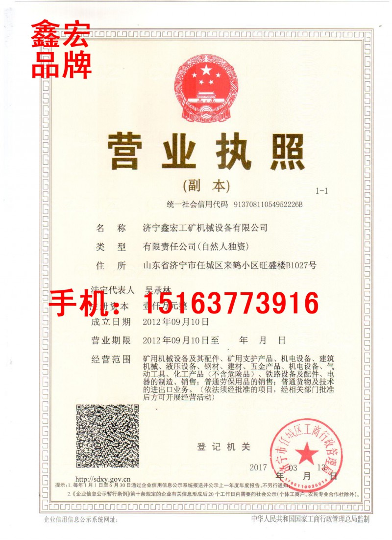 公司名称:济宁鑫宏工矿机械设备有限公司