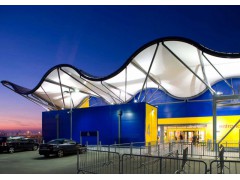 膜结构是建筑结构中新发展起来的一种形式,它以性能优良的织物为材料,或是向膜内充气,由空气压力支撑膜面,或是利用柔性钢索或刚性支撑结构将面绷紧,从而形成具有一定刚度、能够覆盖大跨度空间的结构体系。作为膜结构的一种,天硕膜结构制造的加油站膜结构设计独特、结构新颖、造型优雅,以不规则为主,具有良好的耐热、防火功能。