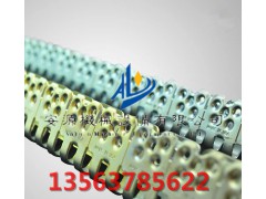 T10矿用皮带连接强度大,耐拉强度高。采用不同厚度的优质进口钢材。而且矿用皮带扣设计合理,外形美观,适用于高强度输送带。矿用皮带扣销钉布局合理,带头纬线不易拉脱,扣身有一定间隙,扣端为斜形,使接头具有弹性易弯曲,反复受力拉不断,增加了不同滚筒的适应性,延长了皮带的寿命。矿用皮带扣设计合理,外形美观,适用于高强度输送带