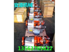 电动套丝机是设有正反转装置,用于加工管子外螺纹的电动工具。又名:电动切管套丝机,绞丝机,管螺纹套丝机。把以前的手动管螺纹绞板电动化。它使管道安装时的管螺纹加工变得轻松,快捷。降低了管道安装工人的劳动强度。套丝机由机体,电动机,减速箱,管子卡盘,板牙头,割刀架,进刀装置,冷却系统组成。