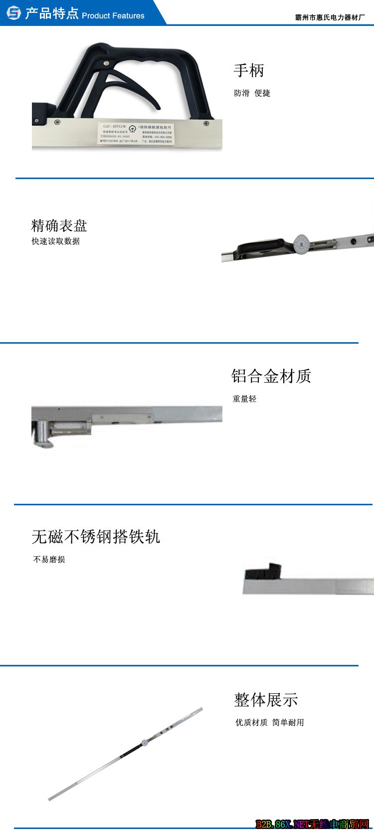 铁路轨距尺(简称道尺)是用于测量铁路线两股钢轨间的轨距、水平度以及超高等的专用计量器具