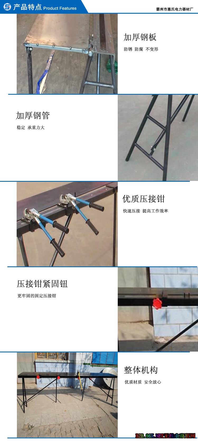 整体吊弦手动压接平台适用于整体吊弦工具的压接和支撑,平台长带有相应的刻度,可以按照要求做出相应规格的吊弦,或者承力索产品