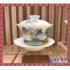 与外地低温色釉盖碗茶具不同,景德镇手绘盖碗茶具属于地地道道的高温瓷,胎体材质多选用高白泥、玉泥等高档瓷土,成瓷胎身细润通透、完美无瑕,为纯手工制作而成,采用地道的手工拉坯、手工利坯和手工绘画工艺精心雕琢,成瓷质量过硬,无可挑剔,是名副其实的高档盖碗茶具。当然,这类手工盖碗茶具批发价格也会相对较高。在瓷都景德镇,陶瓷盖碗茶具批发的种类繁多,包括手工盖碗茶具批发和不断涌入的外地盖碗茶具,本地盖碗茶具批发以手工茶具为主,例如手绘青花盖碗茶具批发、手绘玉泥盖碗茶具批发、手绘粉彩盖碗茶具批发等,这类茶具价格较高、品质上乘,属于高档艺术品范畴,需要注意的问题就是要留心混入的外地盖碗茶具以次充好,以超高的卖价冒充本地茶具,从外表看上去,外地盖碗茶具包装漂亮,釉面清透,但实际上大多为低温色釉瓷,既不便于清洗,使用时又存在安全隐患,至于收藏价值就更不值一提了。