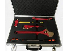2、铍铜合金(俗称铍青铜)防爆工具,具体材质是以高纯度电解铜为基体加入适量铍、镍等金属,组成铜基合金。这两种材质的导热、导电性能都非常好。铝青铜经热处理后其硬度和耐磨性,与铍青铜相差无几都能达HRC30o以上,铍青铜没有磁性,可应用于强磁场环境。铍青铜合金、铝青铜合金在撞击或磨擦时不发生火花,十分适合用来制造在易爆、易燃、强磁及腐蚀性场合下使用的工具。BeA-20C合金在含30%的氧或6.5-10%甲烷空氧中承受561IJ的冲击能,冲击20次,都未发生火花和燃烧。