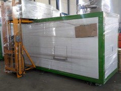 5.生物发酵杀菌干燥系统:分拣分离出的物料经生物发酵、杀菌干燥后可作为宠物、禽类、昆虫、海洋生物等无脊椎动物的饲料原料或生物有机肥原料。系统设有废汽冷凝及余热回收装置,使能耗较目前国内外采用电加热方式的同类产品降低2/3,餐处成本每吨仅需80元左右(以产出物含水率≦20%计)。以一个日产生500KG餐厨废弃物的千人就餐单位为例,每年可节省费用3万多元。