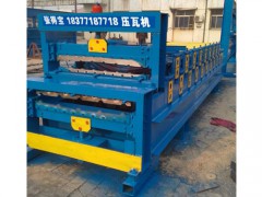 双层压瓦机越来越多的代替了单层压瓦机设备.无论从占地面积还是价格方面都占有优 势,于是双层压瓦机非常受客户们的需求,于是双层压瓦机的销量也是越来越大.为了满足在有限的场地面积上成型两个断面的需要,能迅速地变换产品,双层压瓦机也被设计制造出来,这种双层压瓦机是在高或低机架之间变换,生产一种轮廓的彩钢板安装在低机架上,生产另一种板型的轧辊安装在高机架上面,生产线有一个开卷机,一个切断压力机,如果彩板喂入低层轧辊,成型一个板型(如平房用披又叠板)如料卷喂入高层的轧辊,而成型另一个断面(层面板)。