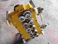 将机器放至两板交合处,并调整两边支脚高度,注意滚轮是否有在所要压的位置。
