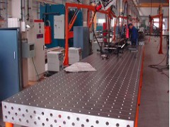 用于调试时的三维柔性焊接平台。其次,清洁擦拭三维焊接平台工作面,确认使用无问题,在使用过程中,避免工件与三维柔性焊接平台工作超出冲突;防止损坏三维柔性焊接平台工作面。工件重量不能超过三维柔性焊接平台的额定载荷,否则工作质量会下降,可能会损坏三维柔性焊接平台的结构,进而导致三维柔性焊接平台的变形和损坏,无法使用。