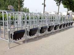 母猪产床是为母猪分娩和哺乳仔猪而设计的用围栏,它做为就是为了能保护仔猪,放止被母猪压死;能为初生小猪提供30℃左右的小气候和小环境;能提供良好的卫生条件,能防止活物积存和病菌的繁殖,减少仔猪疫病;便于对母猪和仔猪的管理。为仔猪提供一个活动的空间我们就设计了仔猪围栏,并防止仔猪跑出去。护栏有栅条式和隔板式两种。栅条式有利于通风和观察,但不利于防疫。隔板式有利于防疫但造价较不错,仔猪围栏的长为2.0-2.3米,宽为1.7-1.8米,高为0.5-0.6米,栅格间距不大于40毫米,仔猪补料槽和饮水器都装在围栏的后部,供粪便徘在后部的排粪区。