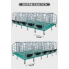 高培定位栏采用热镀锌管厚度2.2,管粗25,可以定做国标2.5热镀锌的,11片为一组,可供10头母猪。母猪产前7天放到高培定位栏中保胎。