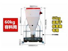 1、一个喂料器可供30-50头育肥猪使用,采用双面结构,一个喂料器可供2个猪圈使用。