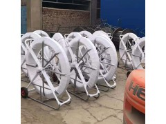 玻璃钢穿孔器又名(玻璃钢穿线器、玻璃钢穿管器,穿孔器,穿管器,电缆穿管器,电缆穿孔器)对于在管道中牵引引导绳是辅助工具。光滑又富于弹性的表面可使穿孔器轻松地通过狭窄的通道。穿孔器由三部分构成:铜芯、玻璃纤维加强层、高压低密度聚乙烯防护层(平滑、坚固,可抵抗恶劣环境)。铜芯导体使捅条可以用不同方式轻易安放。璃钢穿孔器具有省时,省力,提高工效等优点,可用于电信管道清洗及光缆,电缆和塑料子管的布放。使用时首先将玻璃钢覆杆由引轮引出,然后与相应的金属头联接,穿入管路内。用于清理时,引导头带动清理工具,可以清理管道;用于布放电缆时,可先将钢丝或铁线带入,尔后用钢丝或铁线牵引电缆入管。杆 径 11-18mm 杆 长 100-500m 温度范围 -40℃至+80℃小弯曲半径 295mm 牵引断裂张力 4.5T 线密度 150g/m 建筑施工引线用墙壁穿线器,长度30m、40m、60m、80m、120m、150M,200M,300M,500M 1000米等,可按客户要求定制。
