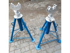电缆放线架 主要规格分;适应电缆盘直径1m 1.2m 1.5m 2m 2.4m 2.8m 3m 3.2m 3.4m 4m等特殊规格可以定做。电缆放线架外观形式分;卧式电缆放线架 立式电缆放线架 大型电缆放线架 重型电缆放线架 梯形电缆放线螺旋电缆放线架 普通液压电缆放线架吊式电缆放线架液压螺旋两用电缆放线架等螺旋电缆放线架又称为手摇放线架,用于线路工程中延放导线时搁置正盘导线 ,采用丝杠升降线盘,轻巧,适合人力放线使用,规格为3吨和5吨。手摇放线架操作说明:1、将手摇放线架铁杠穿过线盘中心孔,把放线盘分别放在线盘两侧;2、利用上部的齿轮调节丝杆高度使用瓦架贴到横杠;3、继续转动丝杠使线盘离地布放电缆。注意事项:1:手摇放线架必须紧贴线盘防止横杠弯断;2:螺旋放线架在平稳地面使用否则容易倾倒;3:使用加力棒转动丝杆,必须180°的正反使用;4:注意利用紧贴齿轮的齿牙。液压放线架是电信,通信等施工工程中通用的一种液压电缆放线架,用于延放导线时搁置正盘导线,起升高度可灵活调整。液压电缆放线架(以下简称液压放线架)采用液压系统,适合人力放线使用。液压放线架由两个三角形状支架与一根坚固的钻杆组合成一套,操作简单,使用方便。