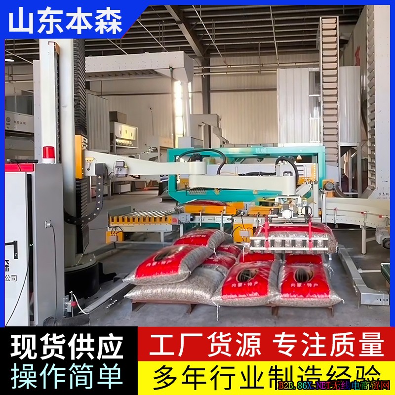 5.适应性强:可针对不同规格和形状的货物进行灵活配置,适用于袋装、箱装等多种形式物料的码垛作业。