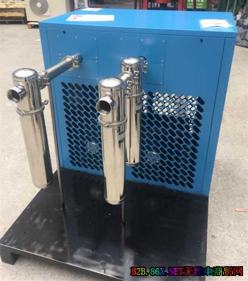 冷冻式干燥机是根据冷冻除湿原理,利y全f闭压缩式制冷系统,对经空压机排出的压缩气体冷却降温,使其中所含的大量饱和水蒸气、油雾凝结液滴,经过经气水分离后由自动排水器排出。较高温度的饱和压缩气体进入冷干机的预冷器,在预冷器中与来自蒸发器的干冷气体进行热交换,降低温度后进入制冷系统的蒸发器,与冷媒蒸汽进行d二次热交换,使本身温度降到接近于冷媒的蒸发温度,在两次降温过程中,压缩气体中的水蒸汽得以凝结成液态水滴并随气流进入气水分离器,分离下来的液态水经自动排水器排出机外,温度较低的干燥压缩气体进入预冷器,与刚进入的湿饱和气体进行热交换,使本身温度得到提高,从而在冷干机排气口得到含水量较低(即l点较低)、相对湿度也很低的干燥压缩气体。冷冻式干燥机由于工作可靠、管理方便、运行f用低l而成为各行业空压站房净化设备的s选机型。