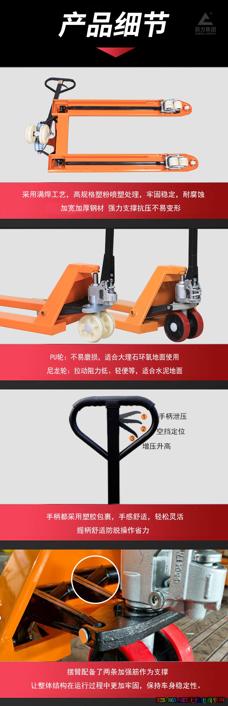 辰力集团 手动液压地牛 医药仓库 3吨 货物升降搬运车
