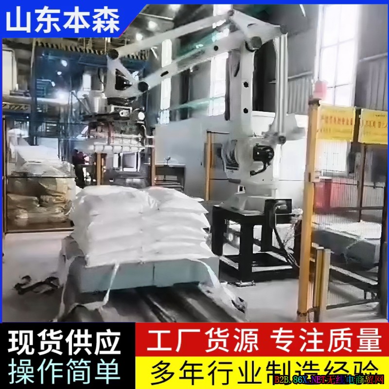 袋装碳酸锶包装码垛生产线搬运机器人是工业自动化领域中,针对袋装碳酸锶产品设计的专用设备,集机械臂、视觉识别、运动控制与智能算法于一体,可替代人工完成包装、搬运、码垛等重复性高、劳动强度大的作业环节。其核心功能是通过精准定位与路径规划,将输送线上的袋装碳酸锶按预设规则堆叠成垛,实现生产流程的无人化与高效化。