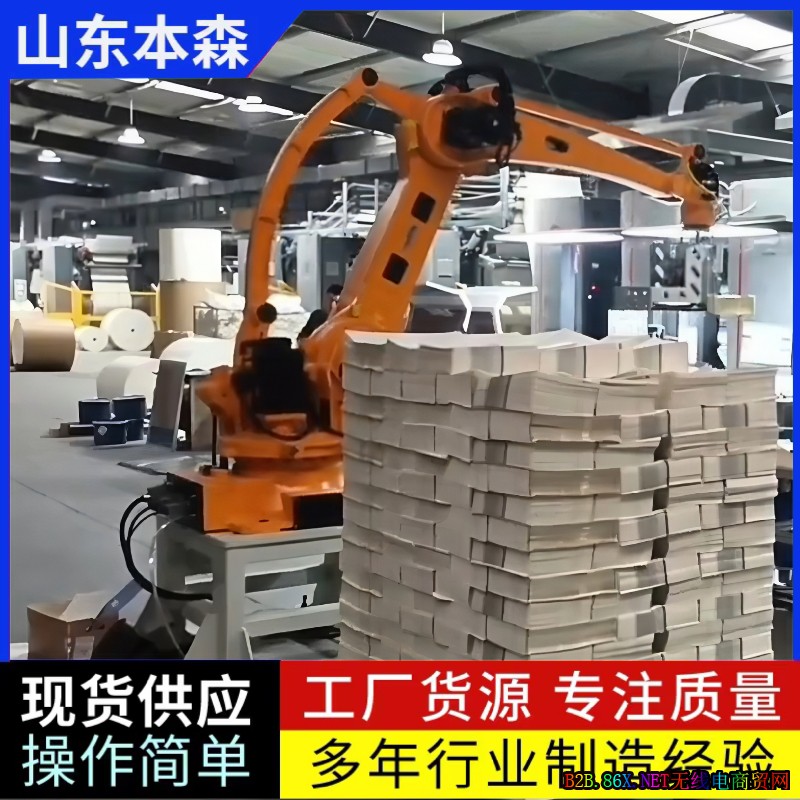 纸张书本课本搬运全自动码垛机是一种能够自动识别、抓取、搬运并码放纸张、书本、课本等物品的自动化设备。它通常由机械臂、输送带、码垛平台、抓取装置(如吸盘、夹具)、控制系统等主要部分构成,可替代人工完成繁重、重复的码垛工作。