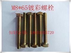 恒轩紧固件公司实力雄厚,常年以Q235B材质的镀彩螺栓产品生产为主,其主要用途是用于在主体为大型设备,需要安装附件,比如视镜、机械密封座、减速机架等。产品型号多种,其中型号为8*65较受欢迎与畅销,重量0.0253kg,产品种类可根据客户要求供应。